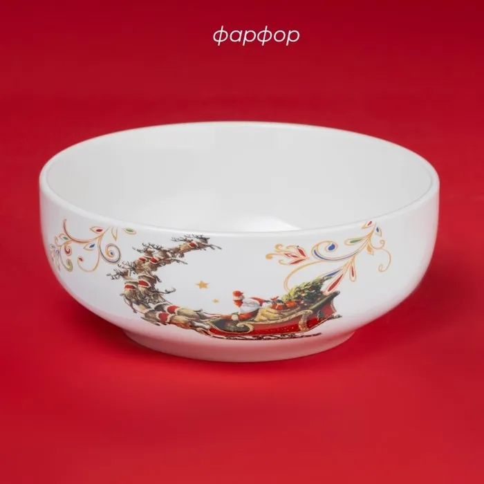 Салатник новогодний Доляна «Сани Деда Мороза», 580 мл, 15,5×6 см, фарфор, цвет белый — Характеристики