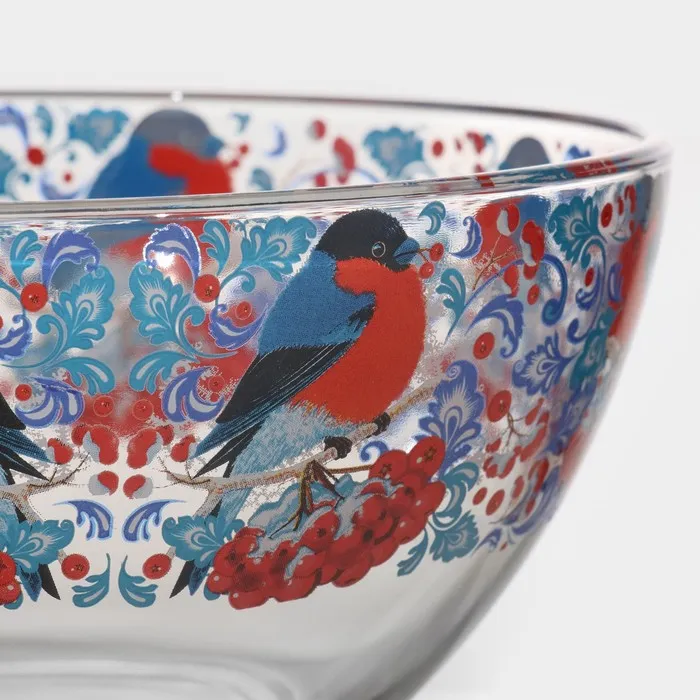 Салатник новогодний «Снегири на рябине», 900 мл, стекло, синий, красный — Характеристики