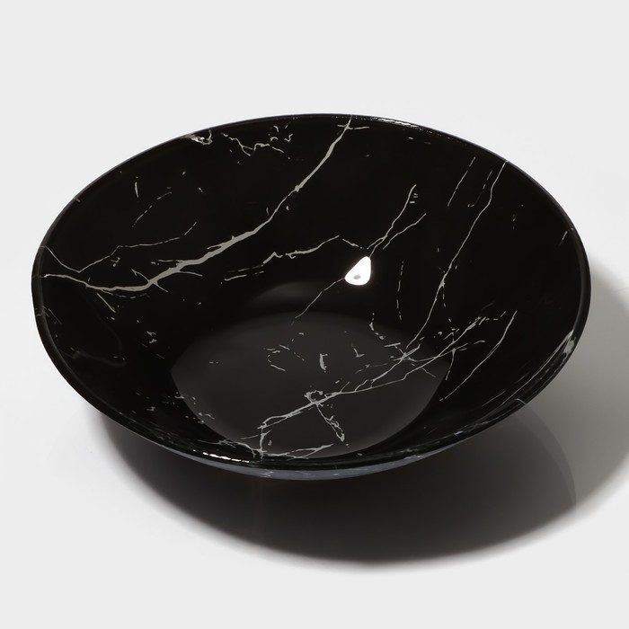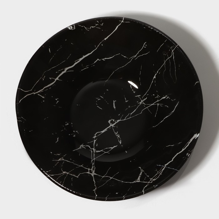 Салатник стеклянный Доляна «Марбл чёрный», 740 мл, 18×4.5 см, цвет чёрный — Характеристики