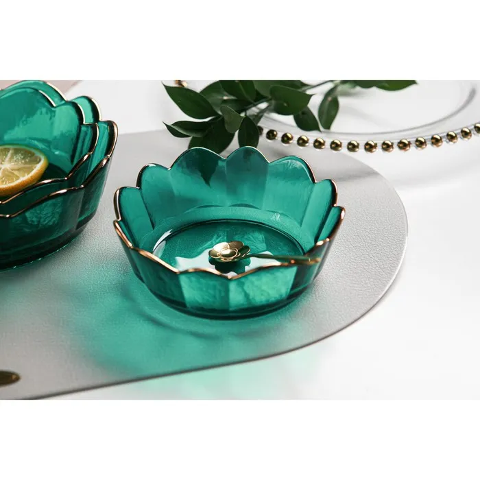 Посуда из стекла «Цветочный сад» имеет красивый рельеф и золотую отводку по краю. Такие салатники придадут вашему застолью изюминку. Оригинальная форма салатников сделает подачу интересной и обязательно запомнится вашим гостям.