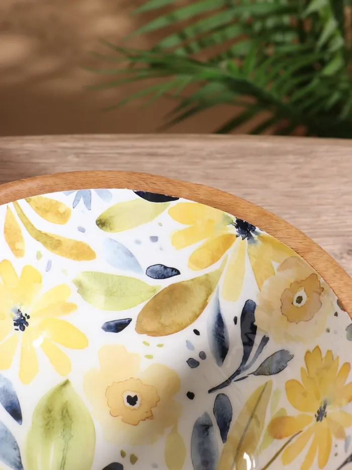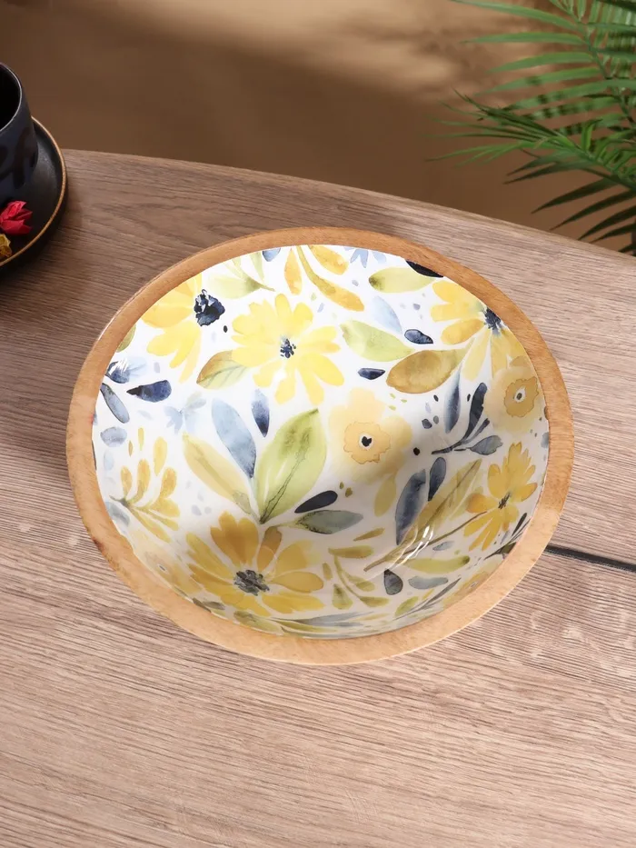 Салатник «Желтые и синие цветы», 25×25×10 см, дерево манго — Характеристики