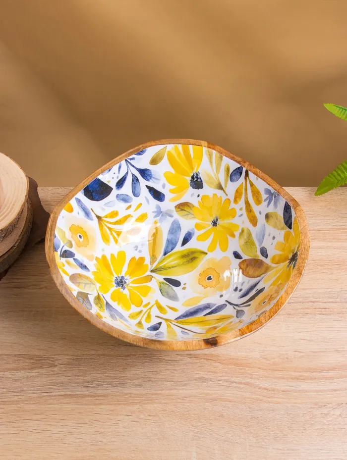 Салатник «Желтые и синие цветы», 29×29×11 см, дерево манго — Характеристики