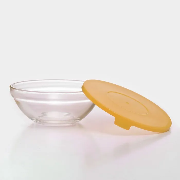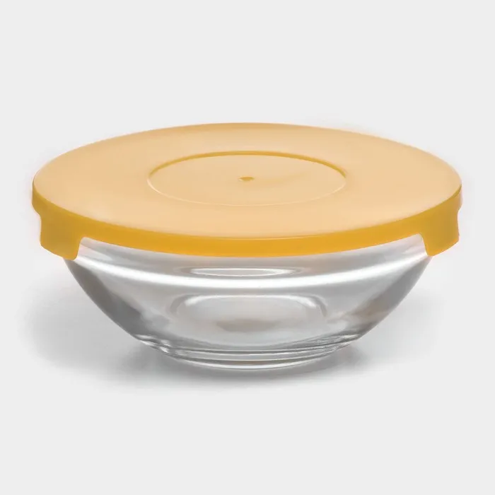 Салатники Доляна «Классика» с крышками, набор 5 шт.: 900/500/350/200/130 мл, стекло, жёлтые — Характеристики