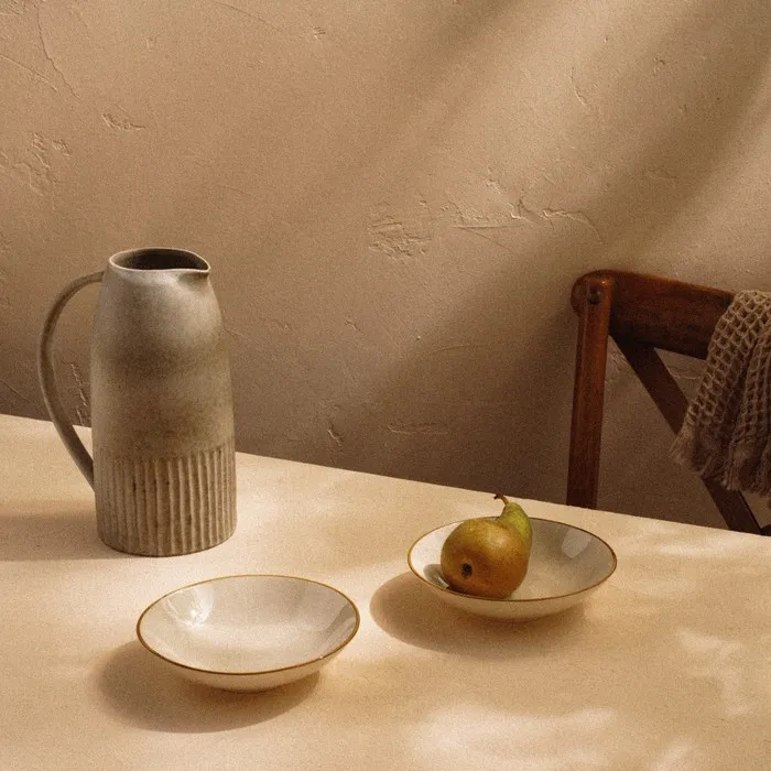 Материал — высококачественный фарфор, который славится своей долговечностью и изяществом. Гладкая текстура и аккуратный рисунок в виде полосок добавляют утончённости и делают этот набор идеальным для сервировки как повседневных, так и праздничных блюд.