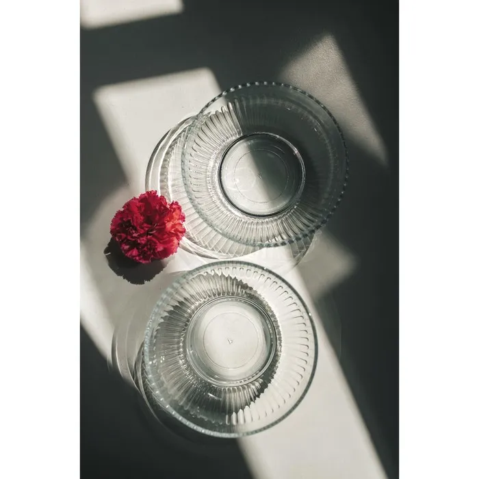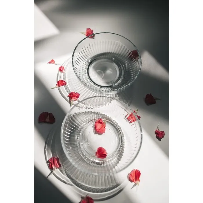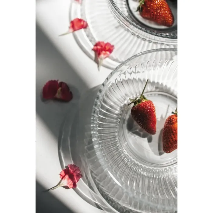 Набор из двух прозрачных стеклянных салатников диаметром 17 см сочетает практичность и лаконичный дизайн. Рельефная поверхность придаёт посуде особый тактильный эффект и визуальную глубину, подчёркивая чистоту и простоту формы.