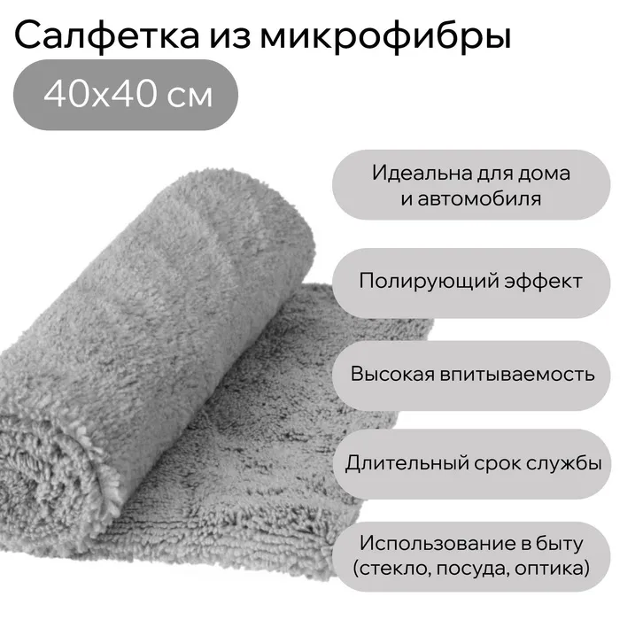 Салфетка из мягкой микрофибры пушистая, полирующая, супервпитывающая 40×40 см, 400 г/м² — Характеристики
