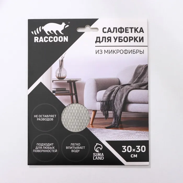 Салфетка торговой марки Raccoon предназначена для сухой и влажной уборки.