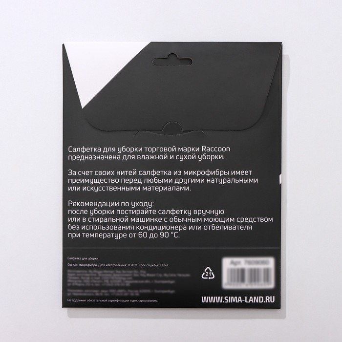 Салфетка торговой марки Raccoon предназначена для сухой и влажной уборки.