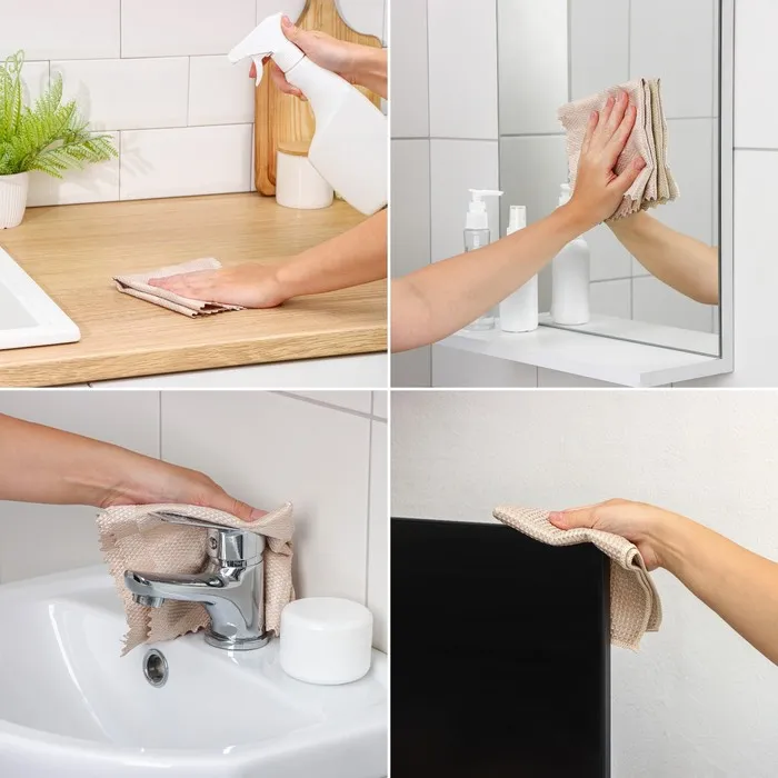- После уборки салфетку можно постирать вручную или в стиральной машине с обычным моющим средством без использования кондиционера или отбеливателя при температуре от 60 до 90C.