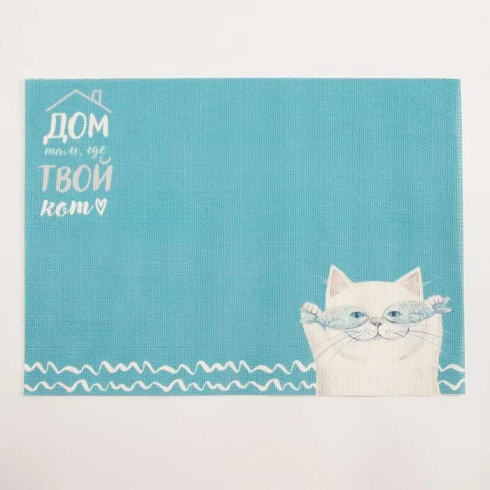 Салфетка на стол "Дом там, где кот" ПВХ, 40х29 см — Характеристики