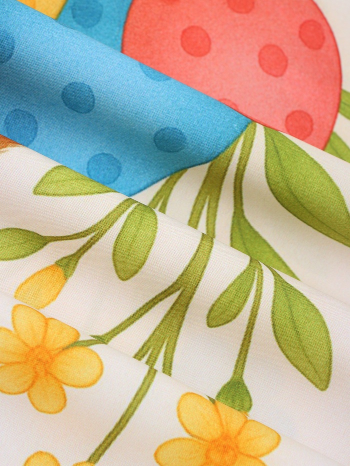- Белоснежный фон с цветным принтом легко сочетается с любой палитрой пасхального декора.