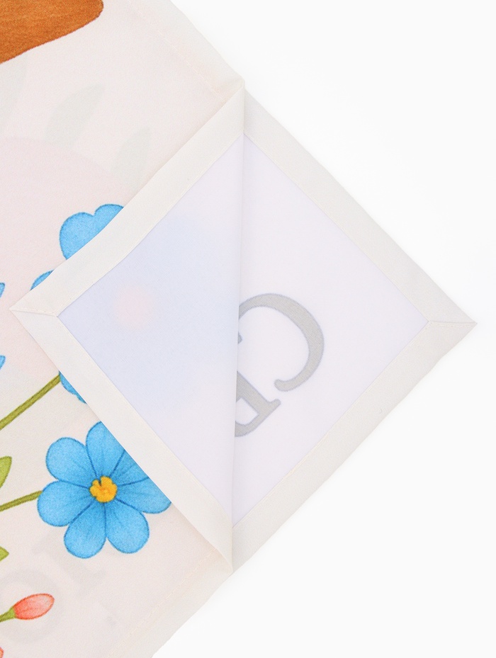 Эта пасхальная салфетка для стола станет ключевым элементом праздничного декора. Квадратный формат идеально подходит для сервировки праздничного пасхального стола, создания уютной атмосферы для семейного завтрака или украшения праздничного уголка с куличами и крашеными яйцами. Изображение пасхального кролика среди весенних цветов создаёт тёплую и радостную атмосферу, которую так ценят взрослые в кругу семьи.