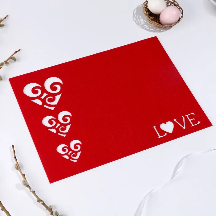 Красная салфетка с сердцами станет стильным дополнением для сервировки стола. Салфетка не только украсит обеденный стол, но и защитит его поверхность от повреждений.