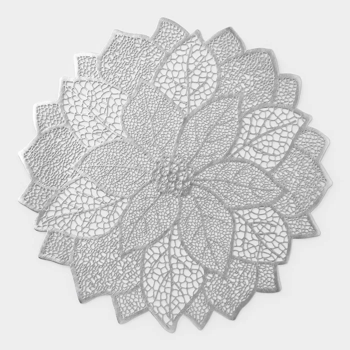 Салфетка сервировочная на стол «Цветок», 38×38 см, серебряная
