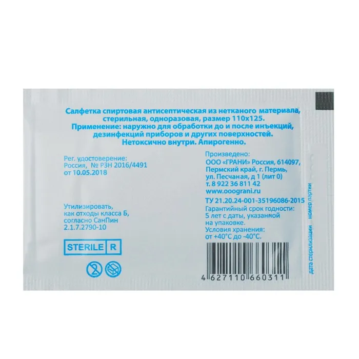 Благодаря пропитке 70-процентным раствором этилового спирта указанная салфетка, кроме антисептических свойств, обладает также сильным противомикробным/антибактериальным эффектом.