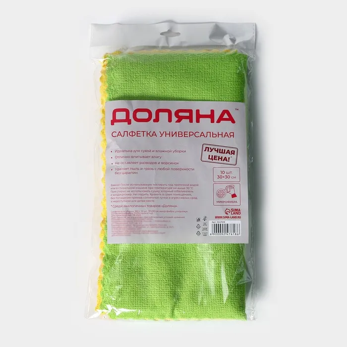 Салфетка универсальная Доляна «Промо», 180 г/м², 10 шт, 30×30 см, микрофибра, ультразвуковая обработка края, МИКС — Характеристики