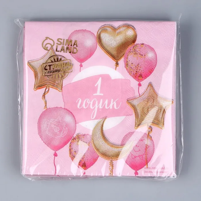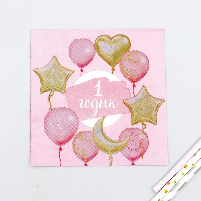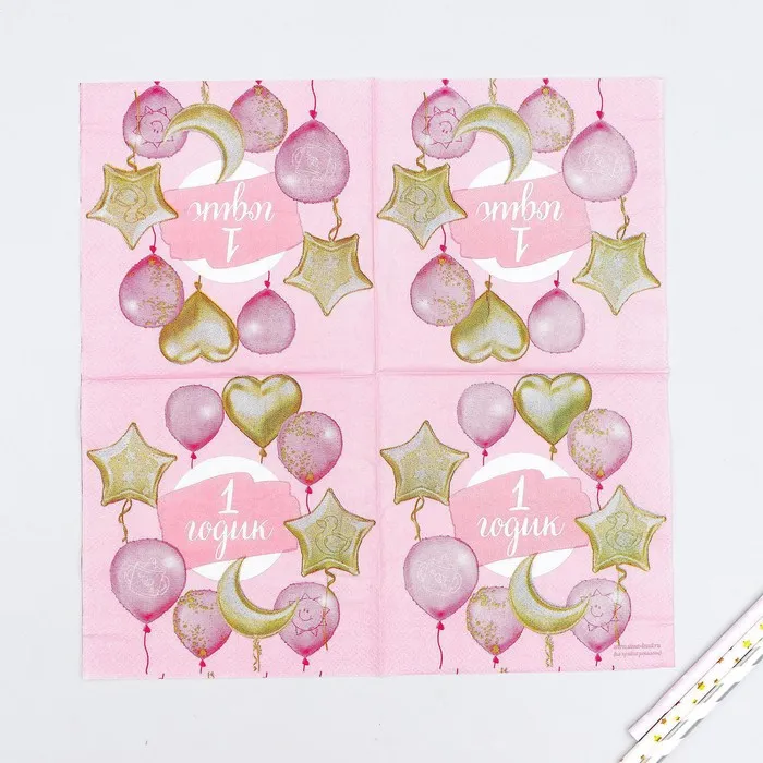 Салфетки бумажные «1 годик», малышка, 25х25 см, набор 20 шт. — Характеристики