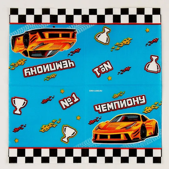 Салфетки бумажные 25×25 см «Тачки», набор 20 шт. — Характеристики