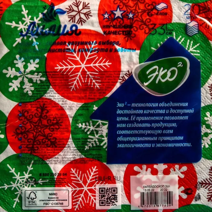 Яркие двухслойные бумажные салфетки.