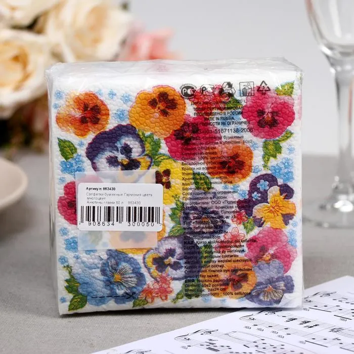 Качественные бумажные салфетки изготовлены из качественной целлюлозы. На салфетках нанесен яркий рисунок.