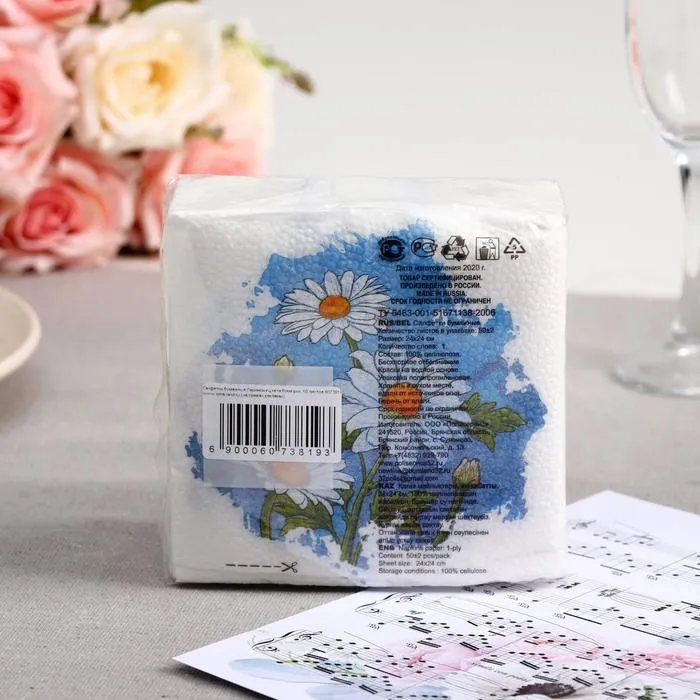 Качественные бумажные салфетки изготовлены из качественной целлюлозы. На салфетках нанесен яркий рисунок.