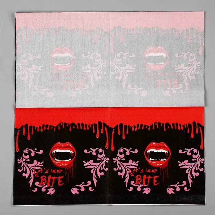 Бумажные салфетки «Губы» — идеальный аксессуар для создания праздничной атмосферы на хэллоуинской вечеринке. Эти яркие салфетки с тематическим рисунком добавят стиль и веселье в оформление стола.
