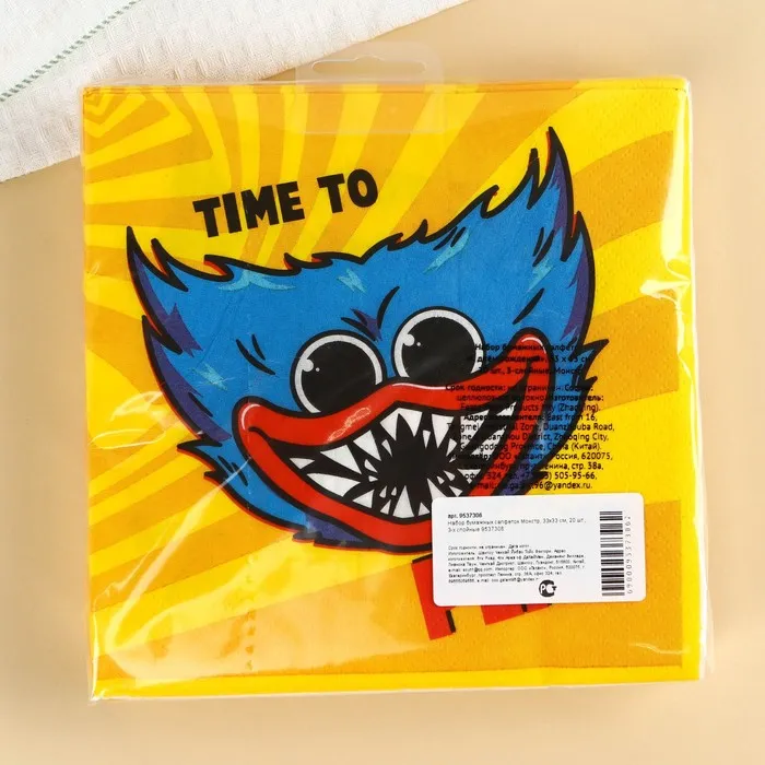 Салфетки бумажные «Хагги Вагги», 33×33 см, 20 штук, 3-х слойные, Монстр — Характеристики