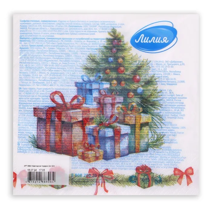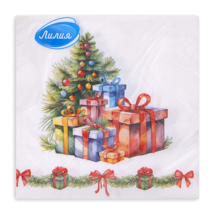 Салфетки бумажные Лилия «Новогодние подарки», 2 слоя, 33х33 см, 20 шт — Характеристики