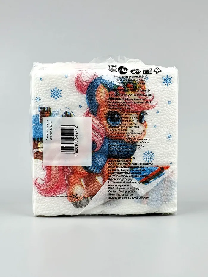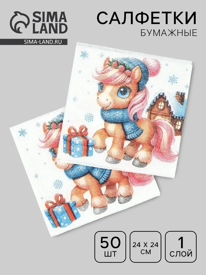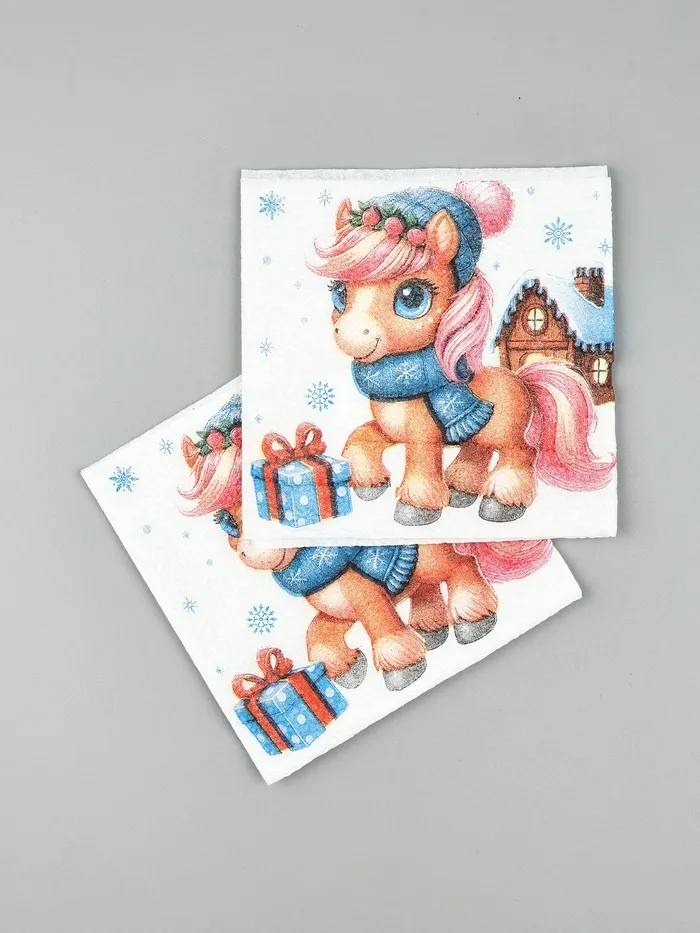 Салфетки бумажные «Лошадка с подарками», 24×24 см 50 листов — Характеристики