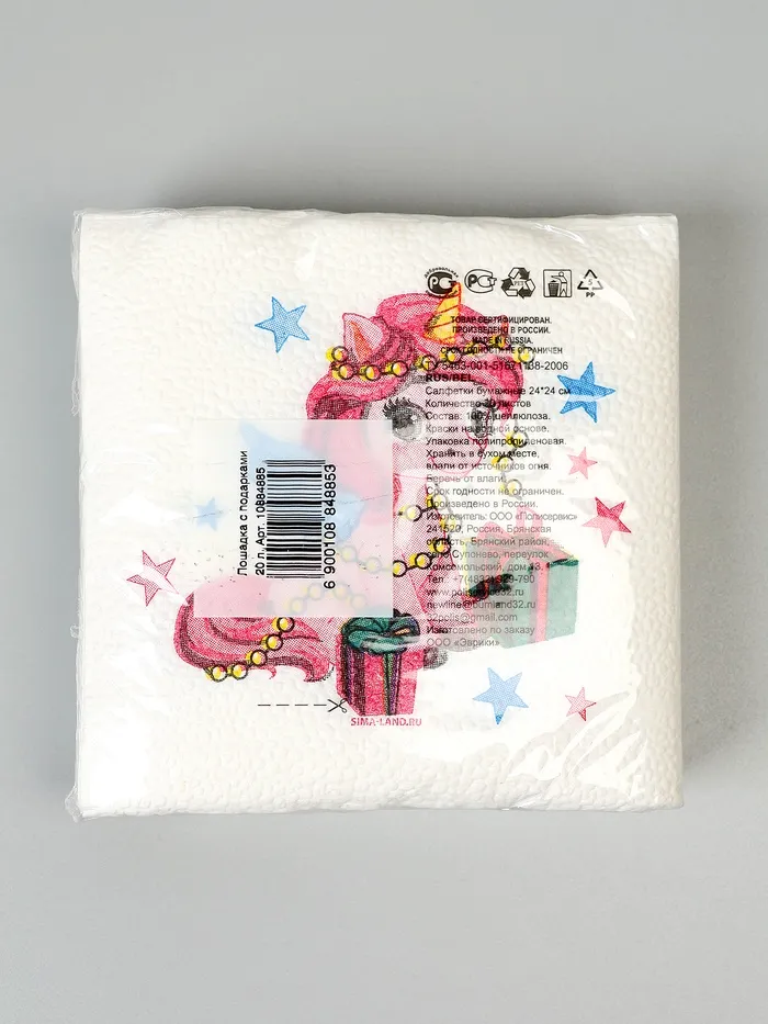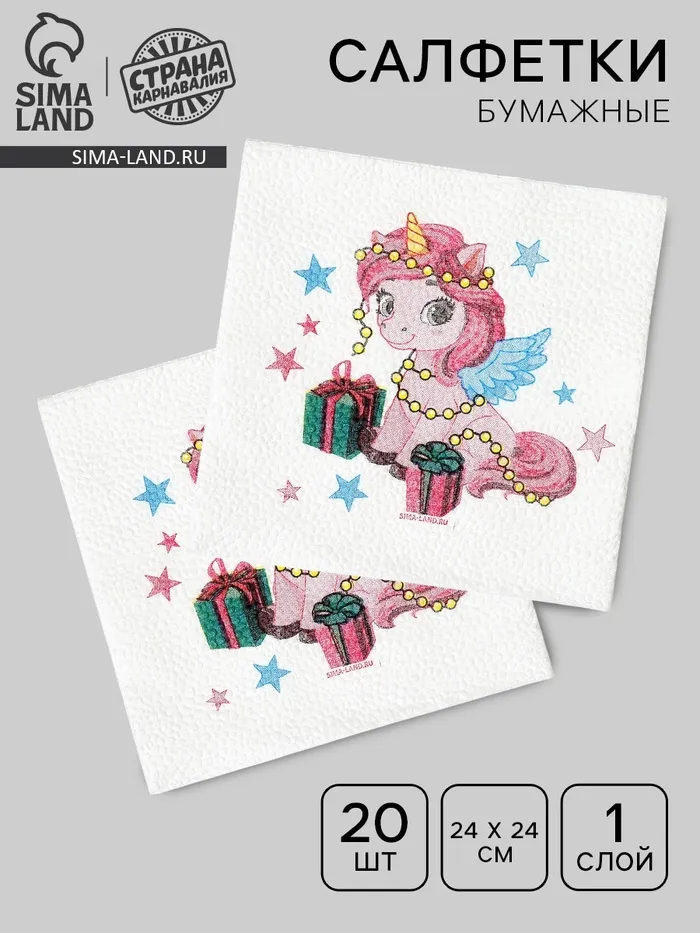 Салфетки бумажные «Лошадка с подарками», однослойные, 24×24 см, 20 шт. — Характеристики