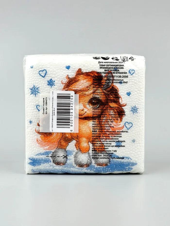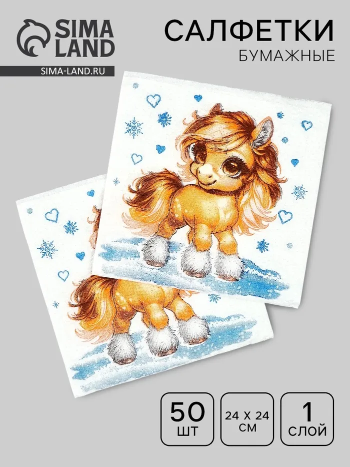 Салфетки бумажные «Лошадка со снежинками», 24×24 см 50 листов — Характеристики