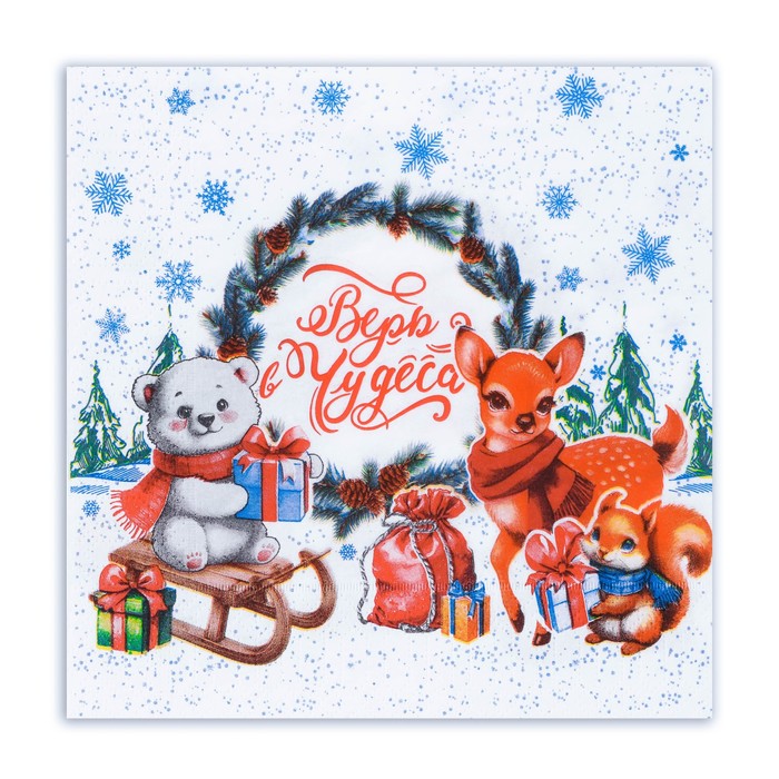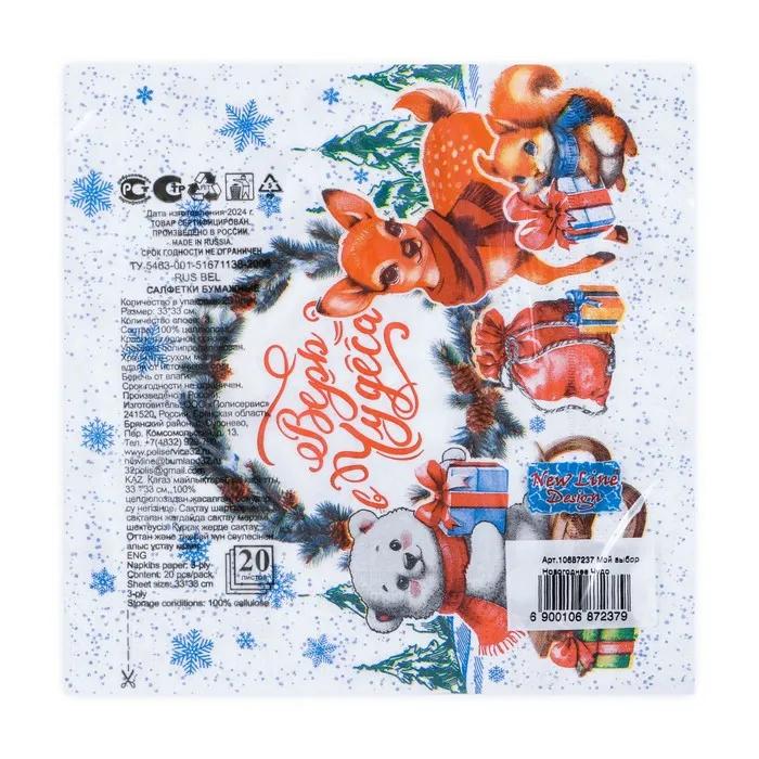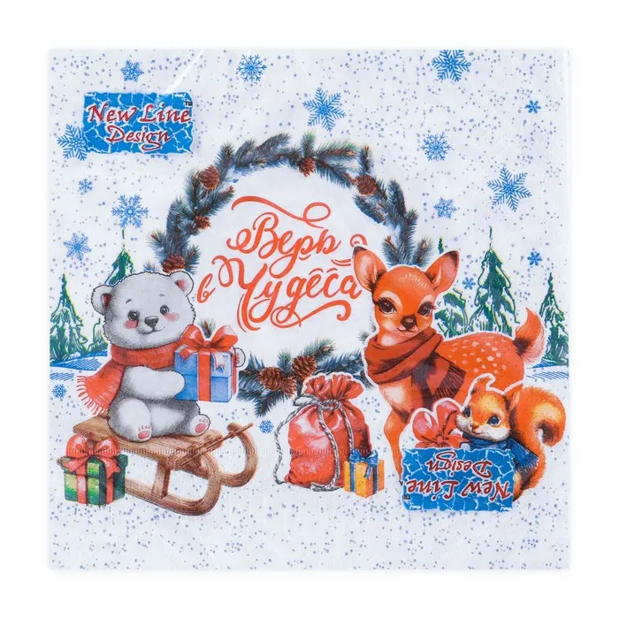 Новогодние бумажные салфетки с рисунком "Новогоднее чудо" - это отличное украшение для вашего праздничного новогоднего стола. Идеально подойдут как для сервировки, так и в качестве декора и украшения как в домашних условиях, так и на больших праздничных мероприятиях. Салфетки с уникальным рисунком будут хорошим подарком для родных и близких. Данные салфетки можно использовать так же для декупажа и коллажей.