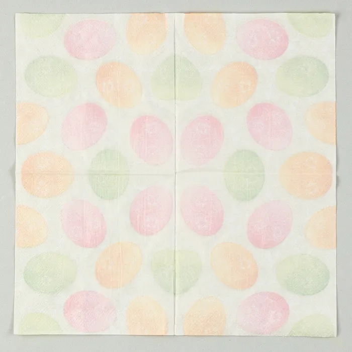 Бумажные салфетки «Пасхальные яйца» — это отличный выбор для украшения стола на светлый праздник. В наборе 20 салфеток, которые оформлены в праздничной тематике. Эти салфетки добавят утончённости и завершённости сервировке стола на Пасху, подчеркнув атмосферу праздника.