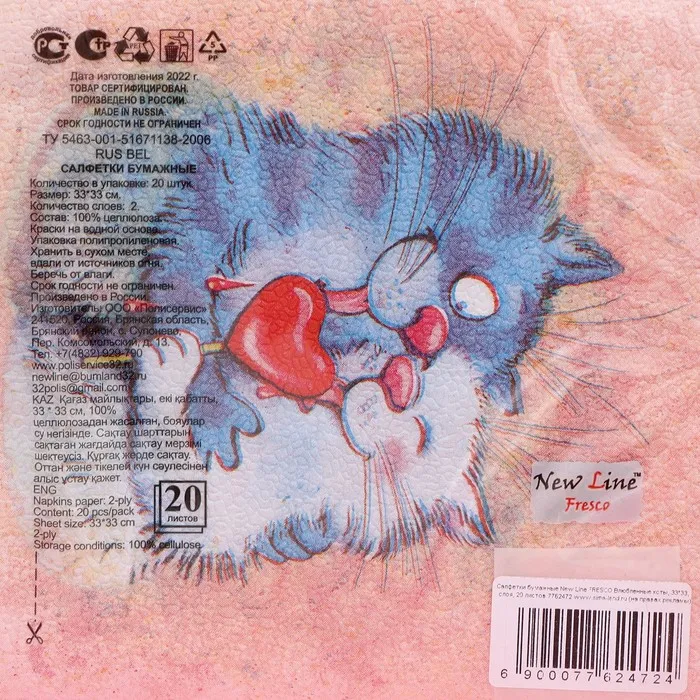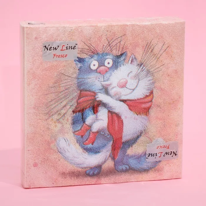 Качественные двухслойные бумажные салфетки изготовлены из качественной целлюлозы. На салфетках нанесен яркий рисунок.