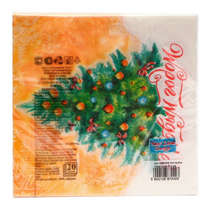 Новогодние бумажные салфетки с рисунком "Новогодняя Ёлочка" - это отличное украшение для вашего праздничного новогоднего стола. Идеально подойдут как для сервировки, так и в качестве декора и украшения как в домашних условиях, так и на больших праздничных мероприятиях. Салфетки с уникальным рисунком будут хорошим подарком для родных и близких. Данные салфетки можно использовать так же для декупажа и коллажей.
