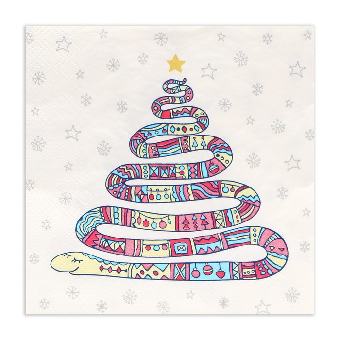 Салфетки бумажные новогодние «Год змеи на белом», 3 слоя, 33х33 см, 20 шт