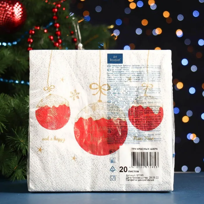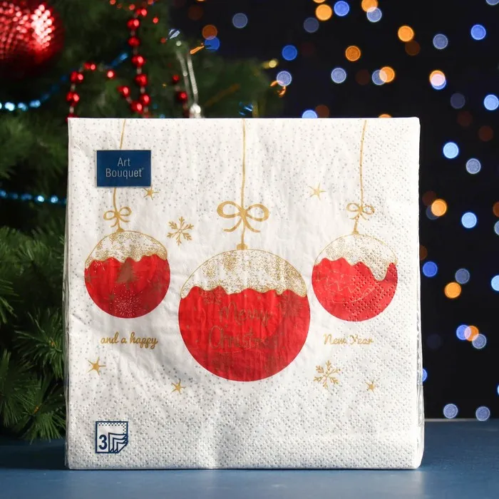 Салфетки бумажные новогодние «Три красных шара», 3 слоя, 33 x 33, 20 шт. — Характеристики
