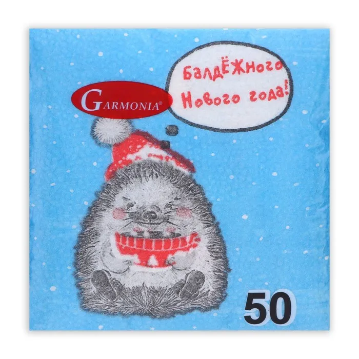 Салфетки бумажные «Новогодний ёжик» 1 слой, 24×24 см, 50 шт. — Характеристики