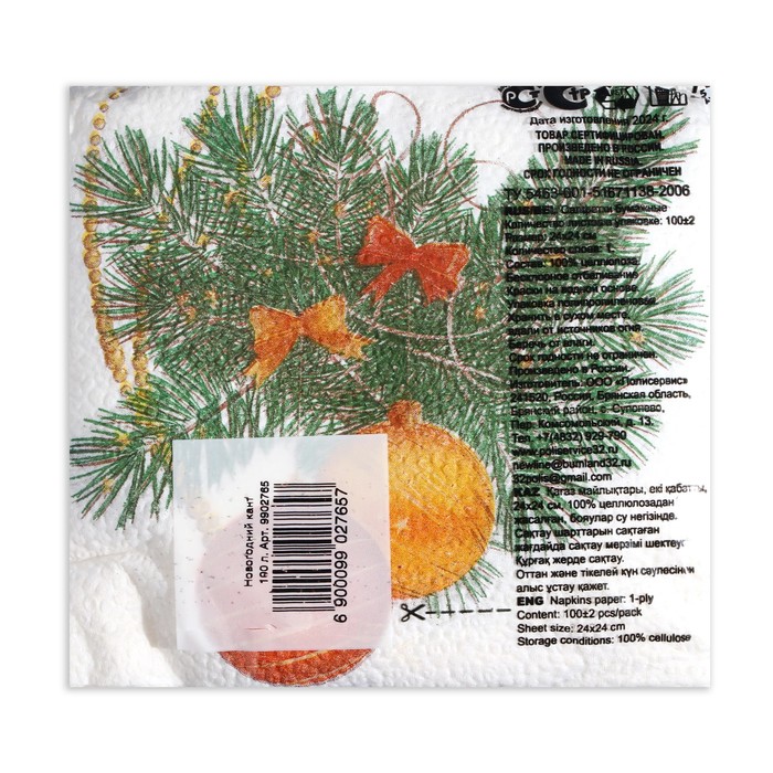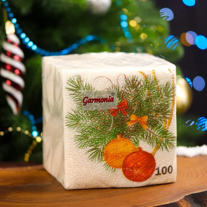 Салфетки бумажные «Новогодний кант» 1 слой, 24×24 см, 100 шт. — Характеристики