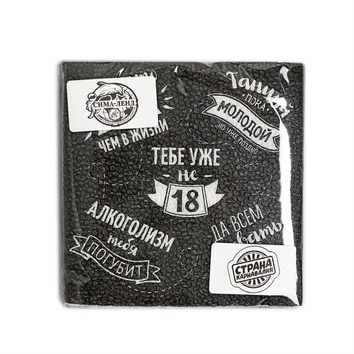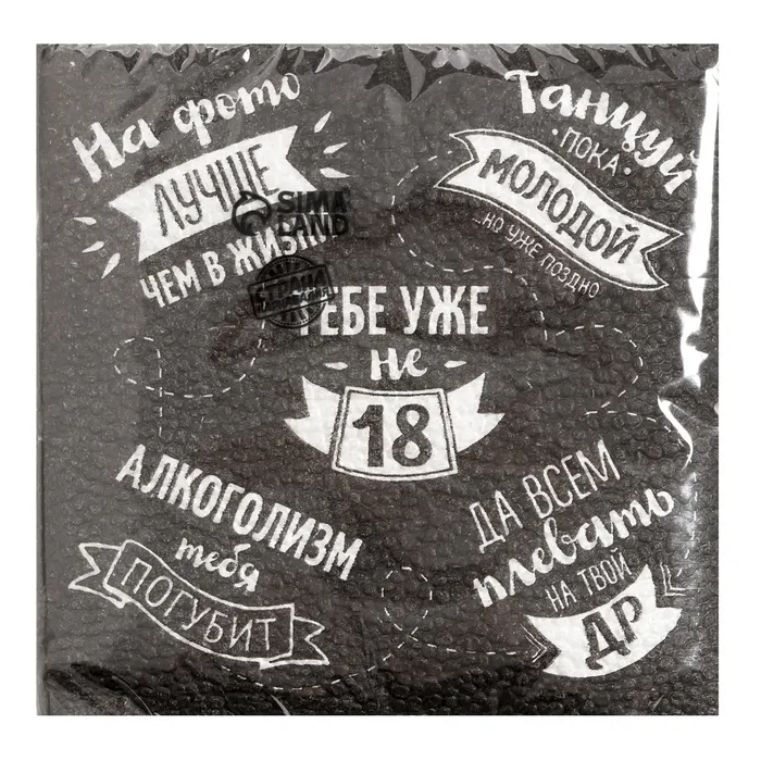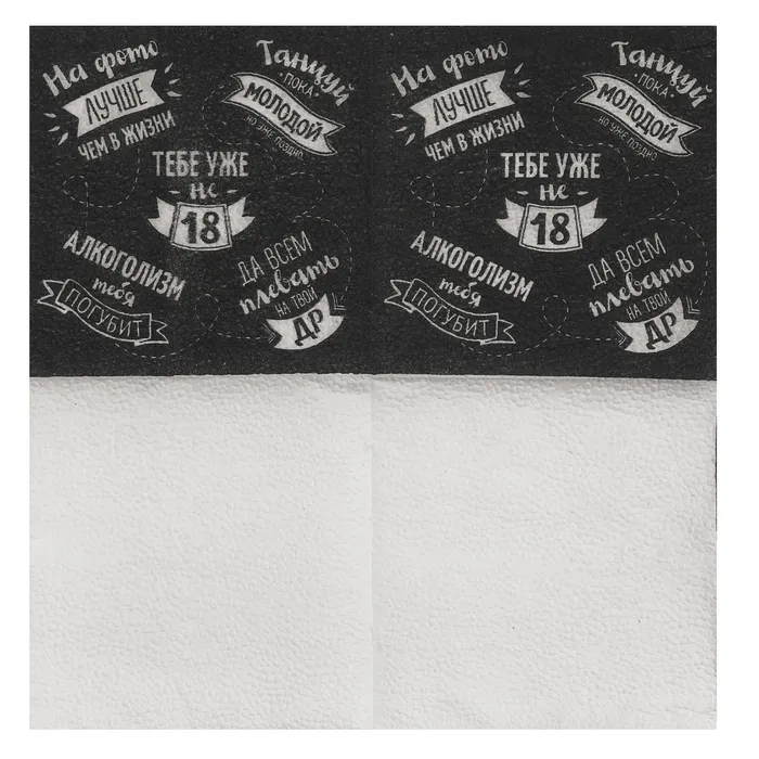 Салфетки бумажные однослойные 24×24 «Тебе уже не 18», 20 шт. — Характеристики