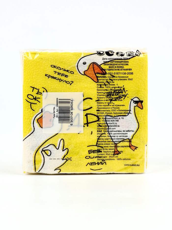 Салфетки бумажные однослойные «Гуси», 24×24 см, 50 шт. — Характеристики