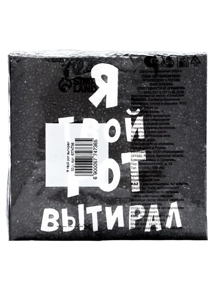 Салфетки бумажные однослойные «Я твой рот вытирал», 24×24, 50 шт. — Характеристики