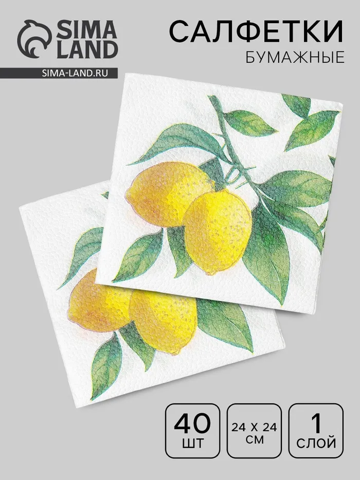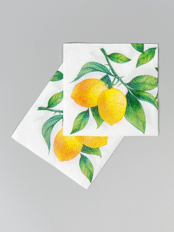 Салфетки бумажные однослойные «Лимон», 24х24, 40 шт
