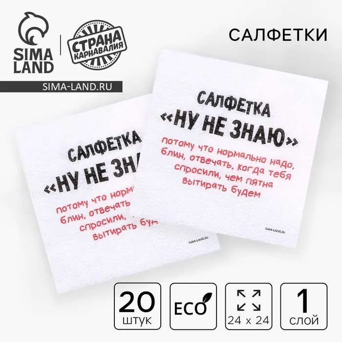 Салфетки бумажные однослойные «Ну, не знаю», 24 × 24 см, в наборе 20 шт. — Характеристики
