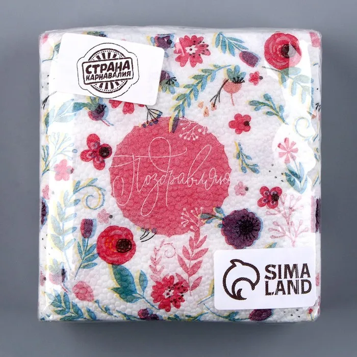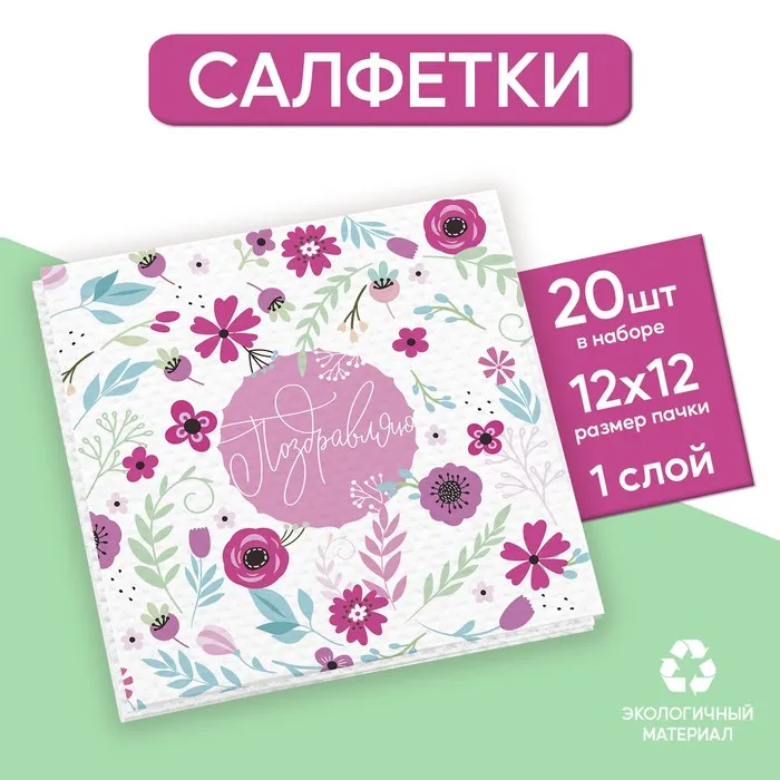 Салфетки бумажные однослойные «Поздравляю», 24 × 24 см, в наборе 20 шт. — Характеристики