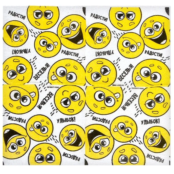 Салфетки бумажные однослойные «Смайлы. Пожелания», 24 × 24 см, в наборе 20 шт.