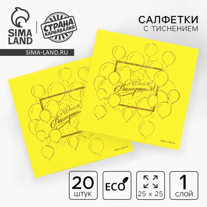 Салфетки бумажные «С днём рождения», 20 шт., золотое тиснение, 25×25 см