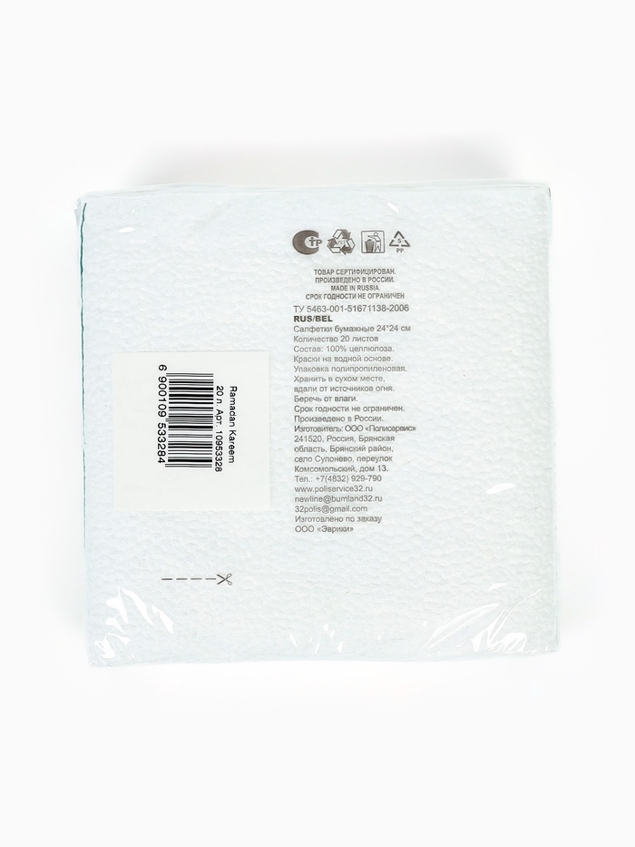 Салфетки бумажные однослойные «Ramadan Kareem», зелёные с золотом, 24х24 см, 20 шт — Характеристики