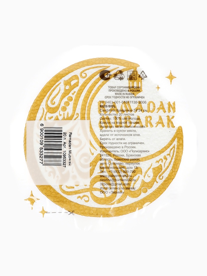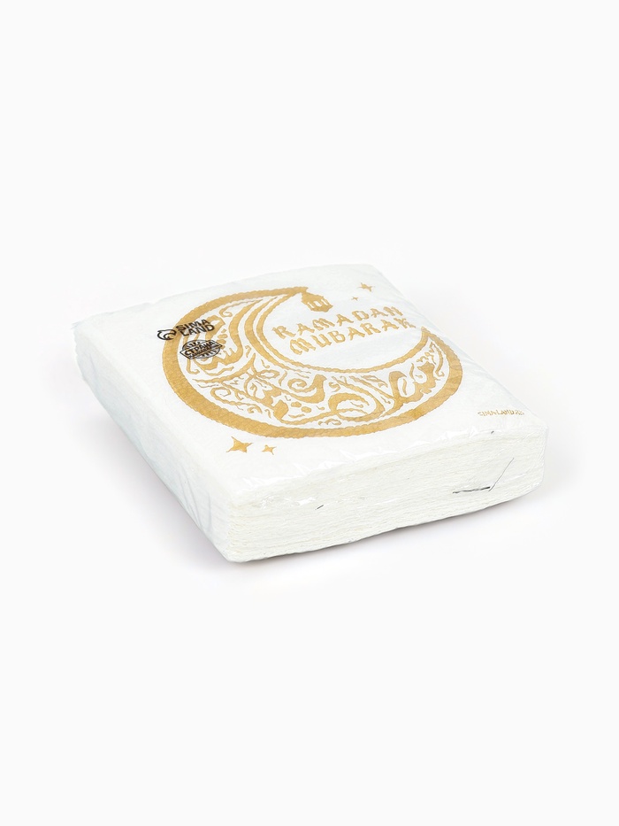 Салфетки бумажные однослойные «Ramadan Mubarak», белые с золотом, 24х24 см, 20 шт — Характеристики