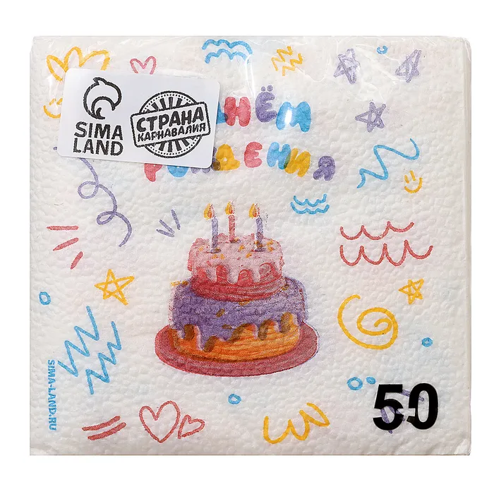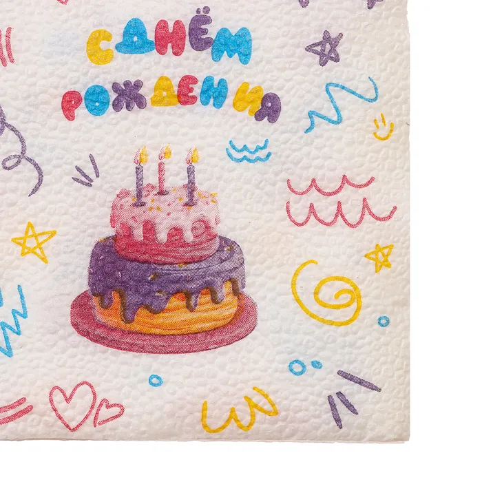 Салфетки бумажные однослойные «С днём рождения» торт, 24 х 24 см, 50 шт — Характеристики